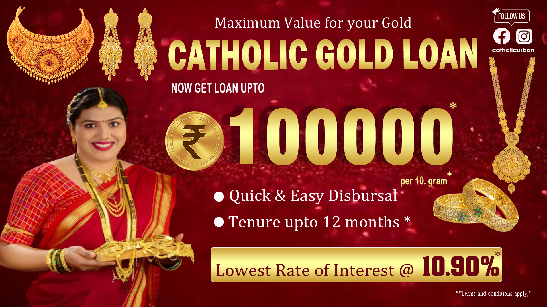 | Catholic Gold Loan | Loan up to Rs. 100000/- Per 10 Gram Loan limit up to 1cr Int rate 10.90%* |